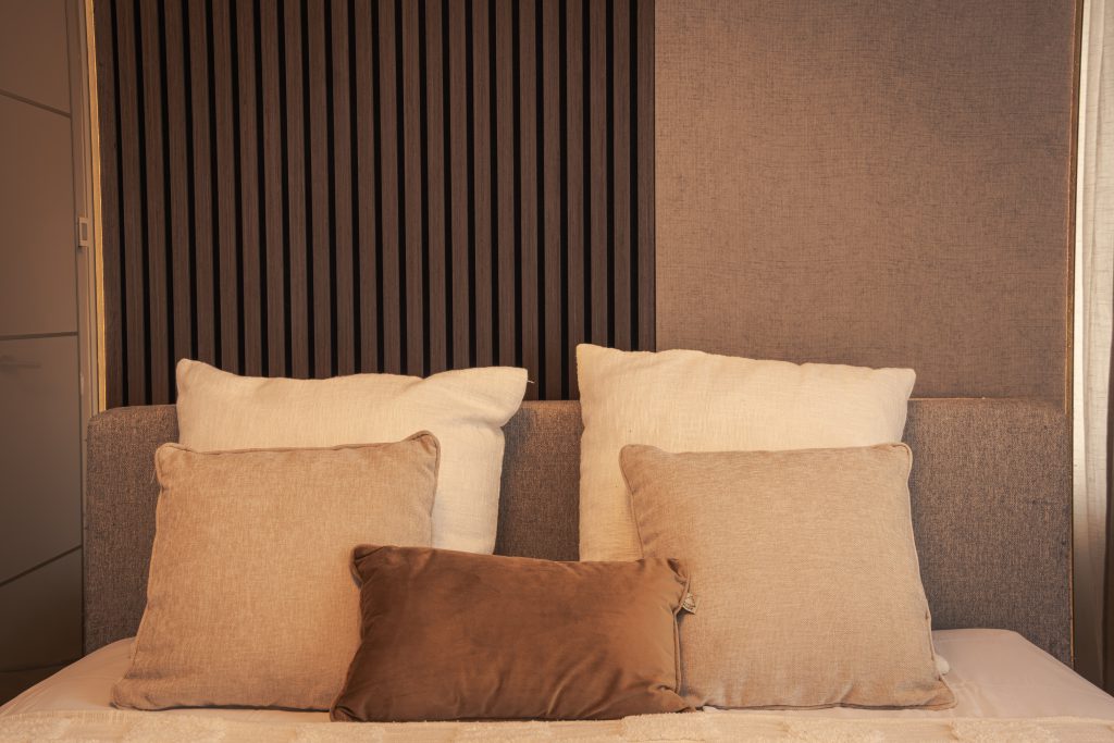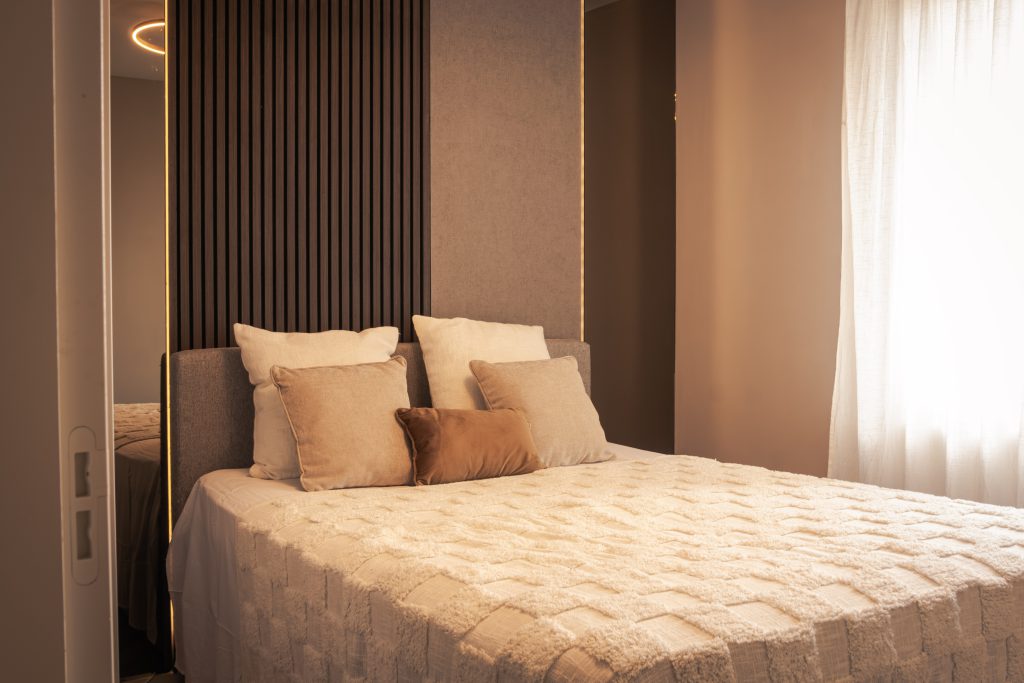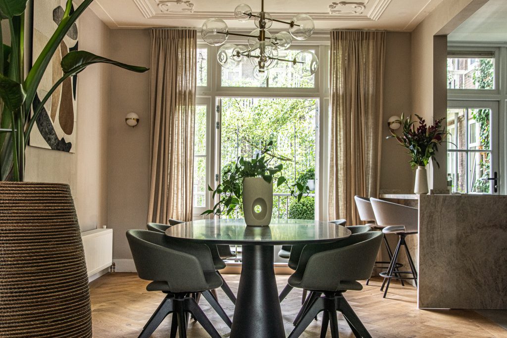 Waar het interieur eerst koel en leeg aanvoelde en voornamelijk witte muren kende, brengen nu rijke materialen, zachte stoffen en subtiele verlichting diepte en comfort.